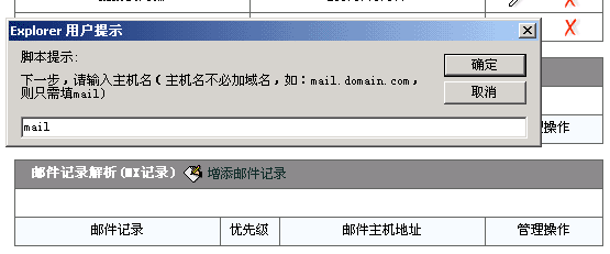 7>按确定后,请输入主机名"mail",表示mail.hzhost.com.按确定就完成了所有操作。